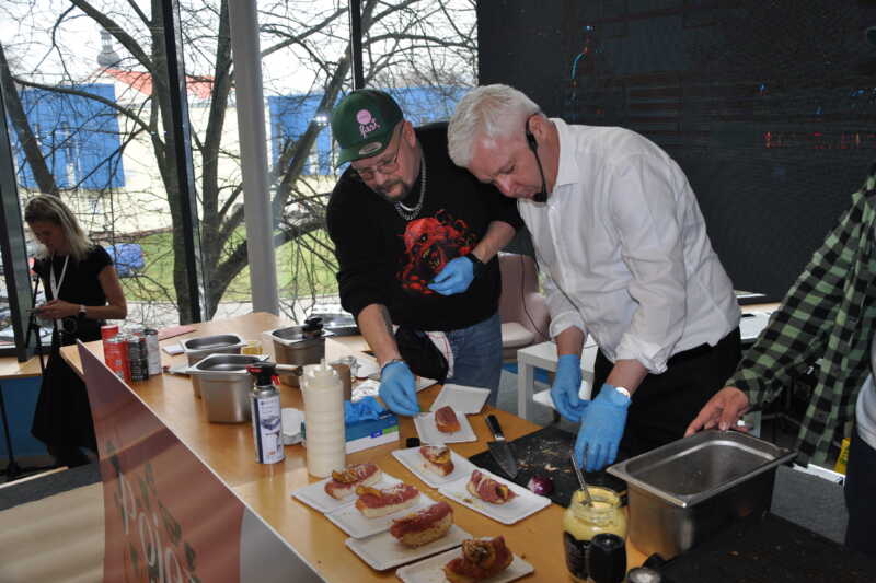 Všimněte si i mikrofomu, protože verbální projev hejtmana v roli kuchaře, gastronomického tvůrce, moderátora a hostitele vyžaduje propojit celou fůru činností – od zručností s nožem a vařečkou, přes uměníé nabrat správnou špetku koření a soli až po fantazii, která umí skloubit chutě, vůně, a samože i celkovou vizáž hotového pokrmu.