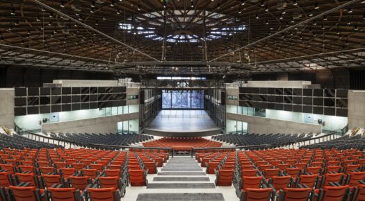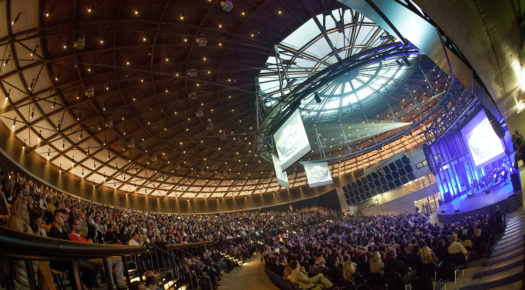 Sedmdesát metrů průměr, výška osmnáct metrů – co jiného, než koncertní sál a kongresové centrum se vším, co si k takové instituci dokážete představit. Na jeho vnější i vnitřní podobě nechal nesmazatelnou autorskou stopu podobně jako na dalších místech DOV architekt Josef Pleskot.