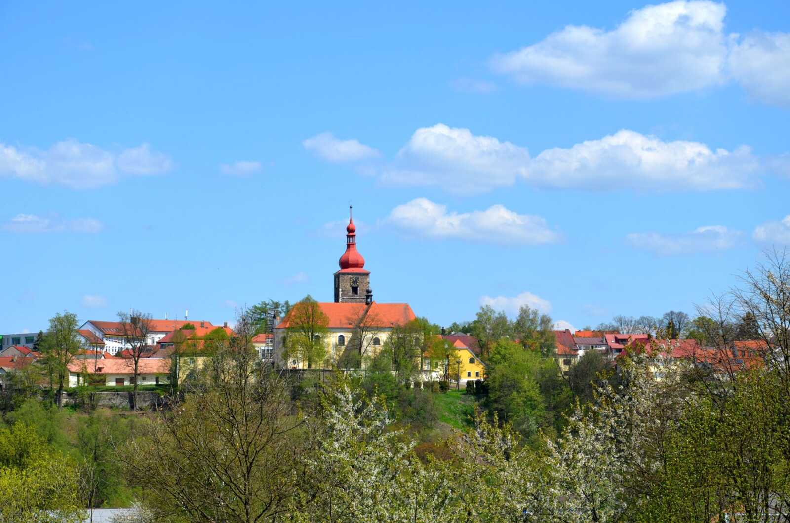 Přibyslav s kostelem svatého Jana Křtitele a věží nabízející mimořádné výhledy