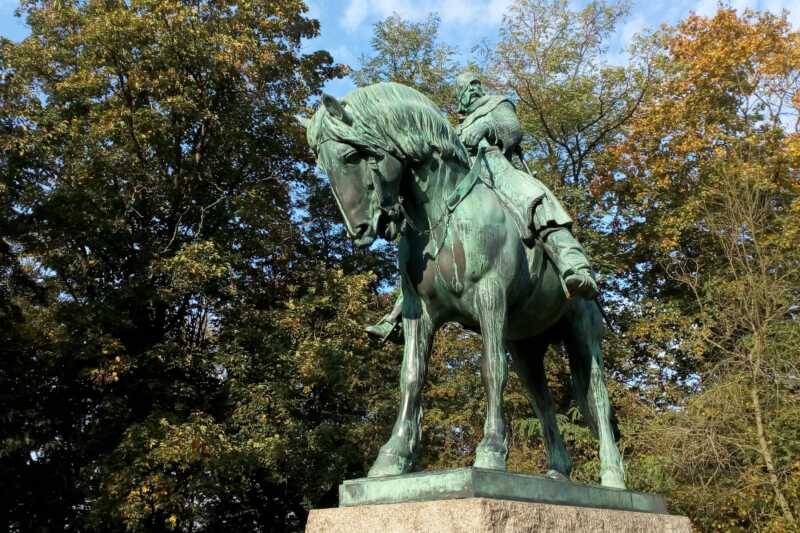 Žižkova jezdecká socha v parku pod zámkem v Přibyslavi